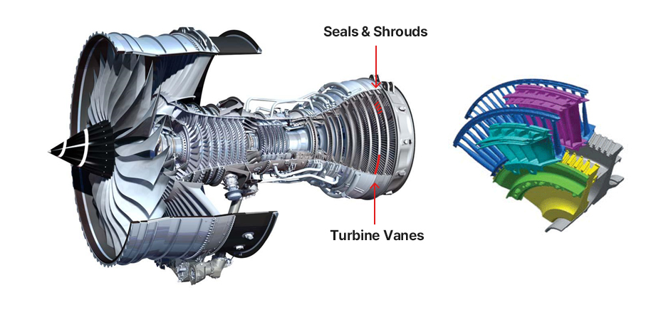 · 가스터빈 엔진의 압축기나 터빈 밖으로 공기가 나가지 않도록 밀봉 역할 · 모든 종류의 가스터빈 엔진들은 여러 개의 허니콤 SHROUD 및 SEAL들을 장착함 · 가스터빈 엔진 주요 부품들을 자체 생산 가능함