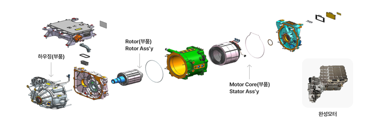 | Motor Housing | 모터를 보호하는 Case로 Motor Core, Shaft, Bearing과 함께 모터 4대 부품 중 가장 중요한 핵심부품 | 금형설계 및 제작기술 Transfer 설비 운영 및 PM 역량 |