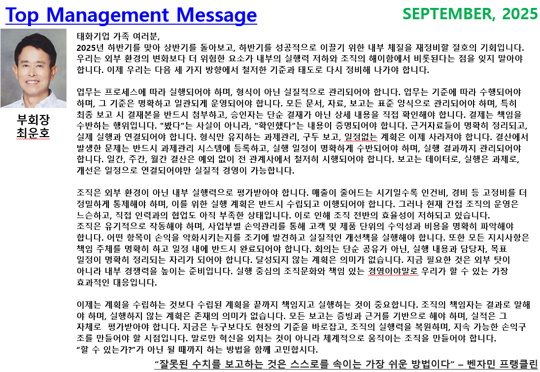 2025년 9월 Top Management Message
